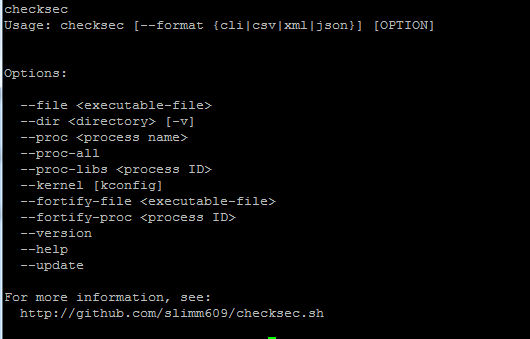 它是用来检查可执行文件属性,例如PIE, RELRO, PaX, Canaries, ASLR, Fortify Source等等属性。