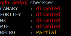一般来说,如果是学习二进制漏洞利用的朋友,建议大家使用gdb里peda插件里自带的checksec功能,如下: